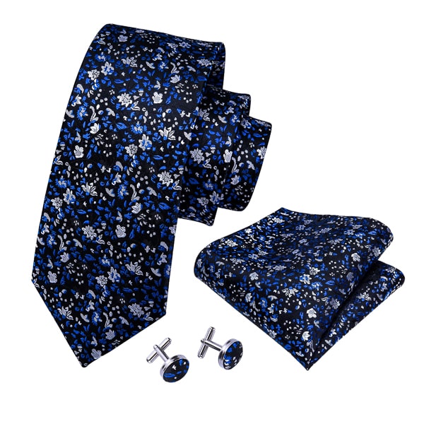 The beautiful tie comes with a matching pocket square and cufflinks to complete the look. It is one of the best neckties to wear at a formal event. Despite its affordable price, due to the precise stitching and high-quality silk fabric, this black and blue flower tie lasts like an expensive premium tie. The fabric is made of soft, premium jacquard woven silk that feels and looks amazing. You can’t go wrong with a tie like this.?